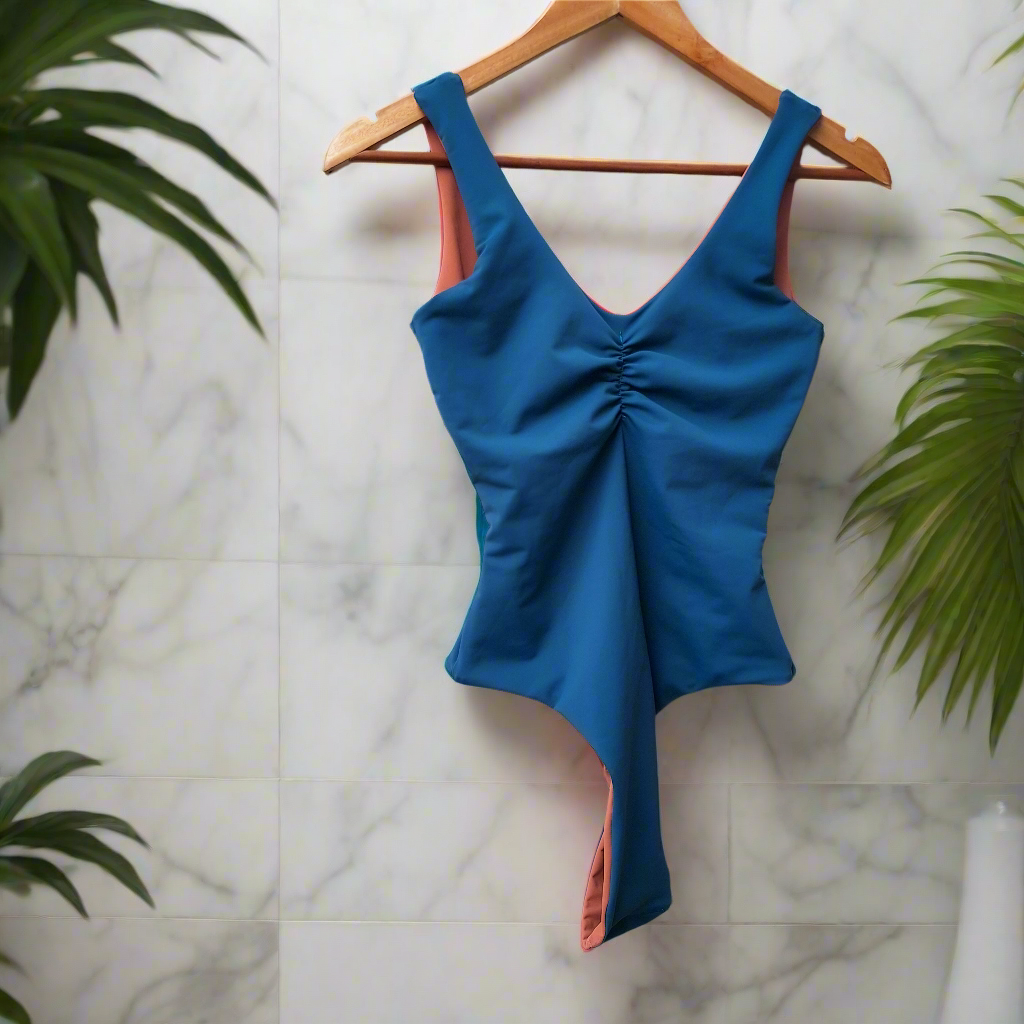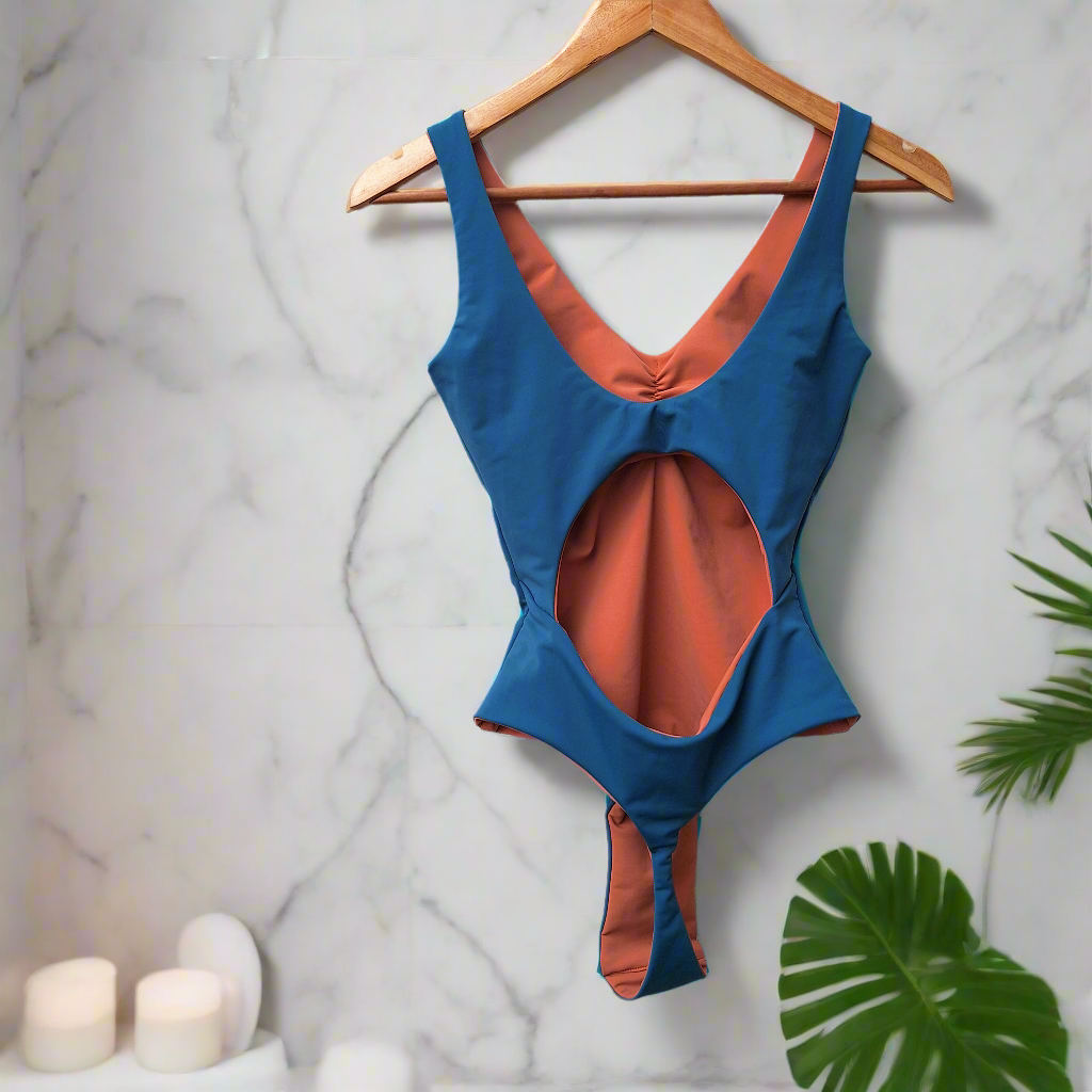 - Espalda abierta simulando un diseño de dos piezas